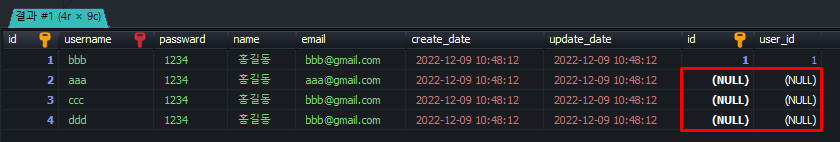 >> 사용자가 기준인 경우 id와 user_id에 NULL값이 입력된다. 👇👇