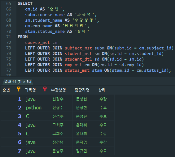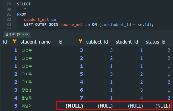 'course_mst'값 중에 비워져 있는 값은 NULL값으로 출력된다.