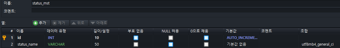 'subject_mst / student_mst / status_mst'는 'course_mst'에 종속되어 있지만