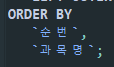 >> 과목명을 기준으로 'SELECT'문이 '오름차순'정렬되었다.