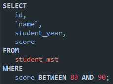 'student_mst'테이블에서 'score'가 80과 90 사이에 있는 데이터를 조회해라