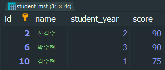 반대로 'student_mst' 테이블에 NULL 값이 없는 fields를 검색하게 되면 모든 값이 조회된다.