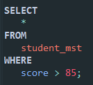 'student_mst'테이블에서 'score'가 85점이 넘는 데이터를 조회해라