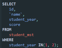 연산자 기호를 쓸 때에는 not이 맨 앞으로 (not student_year = 3 / student_year != 3)
