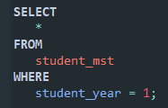 'student_year'이 1인 학생만을 조회하고 싶을 때에는 어떻게 해야 하는가?👉 WHERE 절을 사용한다.