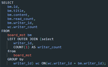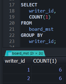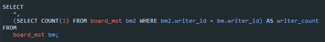 SELECT writer_id, COUNT(1) FROM board_mst GROUP BY writer_id) 자체가