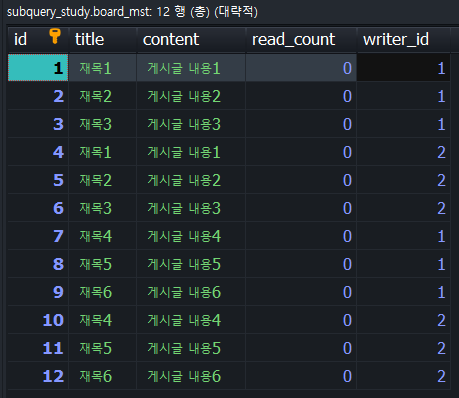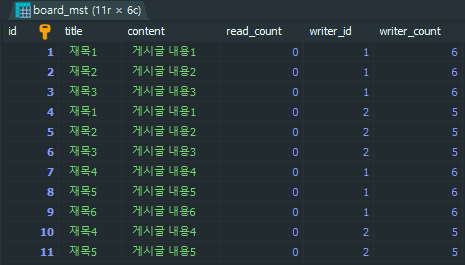'INSERT쿼리문으로 데이터 입력 >> 'board_mst' 테이블